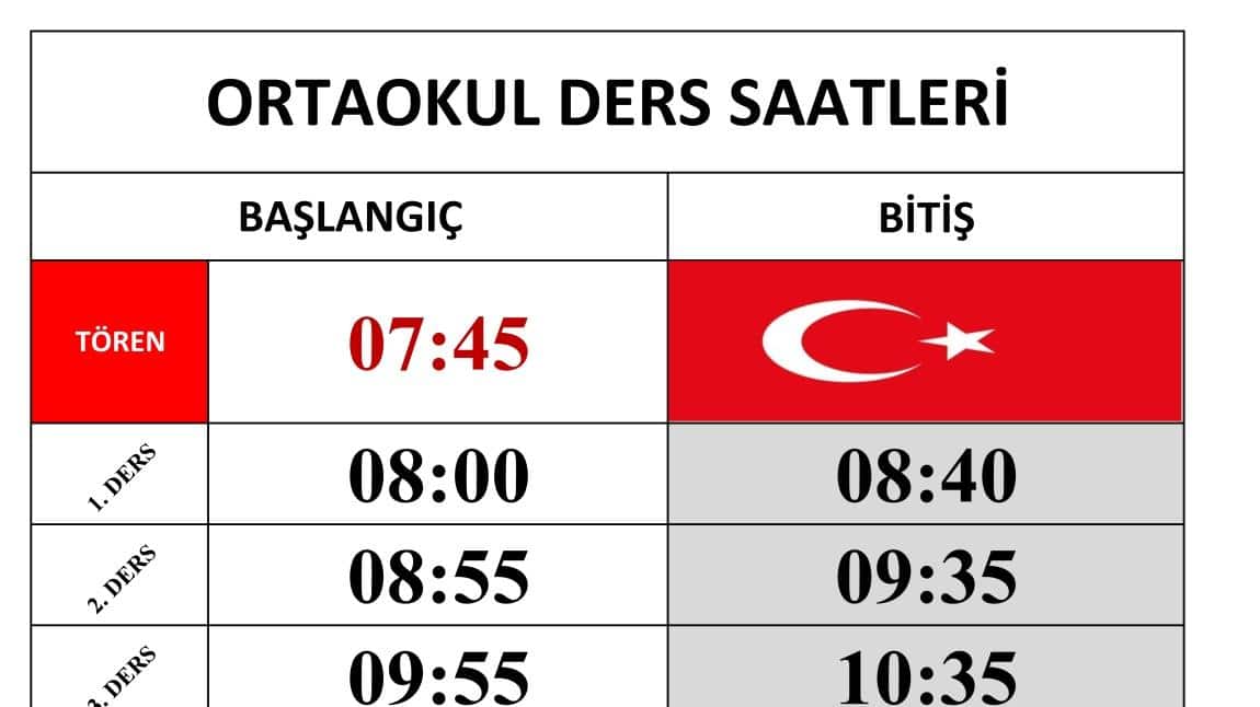 2025-2026 Eğitim-Öğretim yılında Ders Balama ve Bitiş saatlerimizdir.